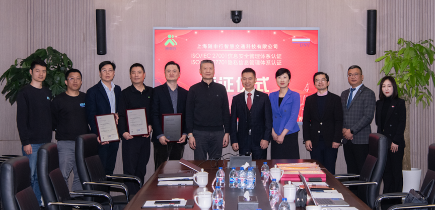 随申行顺利通过国际权威认证机构挪威船级社(以下简称“DNV”)的严格审核,获得 ISO/IEC 27001 信息安全管理体系及 ISO/IEC 27701 隐私信息管理体系国际认证。