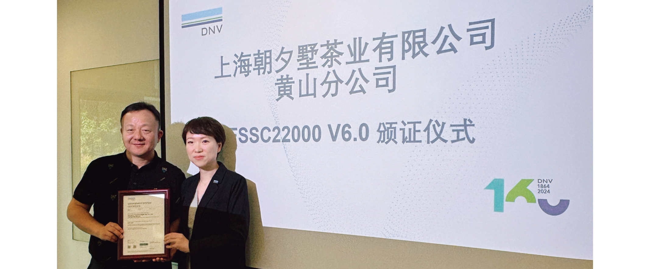 朝夕墅茶业黄山茶厂获颁 FSSC 22000 V6.0 食品安全管理体系认证证书