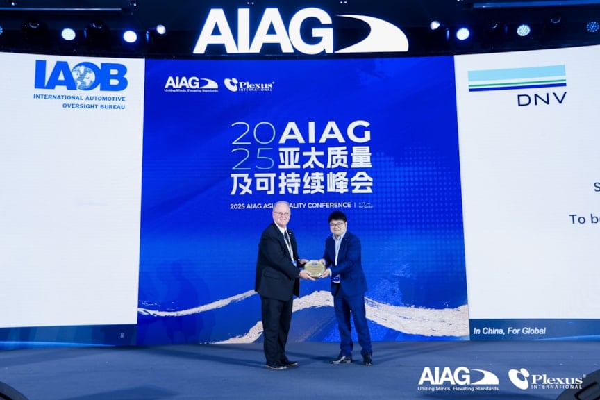 4月28日,DNV 管理服务集团中国区汽车行业业务发展经理金鑫和区域业务发展经理董雪作为代表参加了 2025 AIAG 亚太质量及可持续峰会。这场峰会是汽车行业内极具影响力的盛会,吸引了政府代表、汽车主机厂、产业领袖、专家学者及行业精英等各方翘楚齐聚一堂。峰会聚焦汽车产业的最新动态、标准制定、技术研发与应用等前沿热点话题,旨在通过各方智慧交融,围绕可持续发展路径展开深入探讨,推动质量管理与可持续发展目标的深度融合。在峰会上,DNV 凭借其在汽车行业的卓越贡献,被授予卓越贡献奖章,这是对 DNV 在推动汽车质量提升与可持续发展方面所做努力的高度认可。