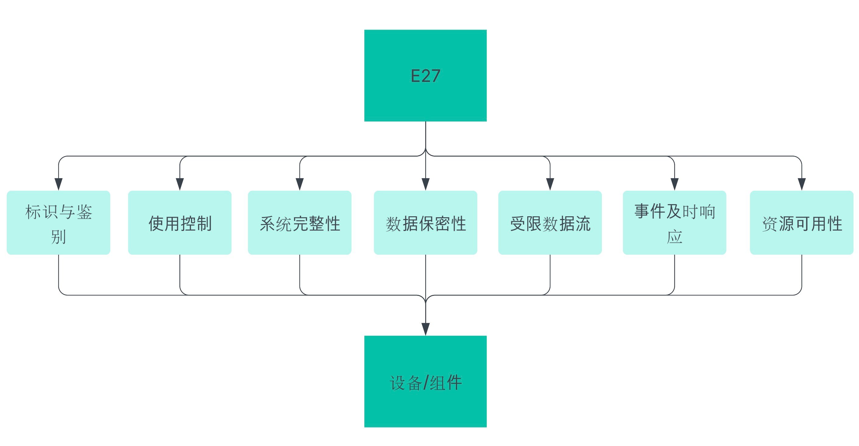 E27 则针对设备级网络安全,标识与鉴别、使用控制、系统完整性、数据保密性、受限数据流、事件及时响应、资源可用性7个维度提出具体要求。